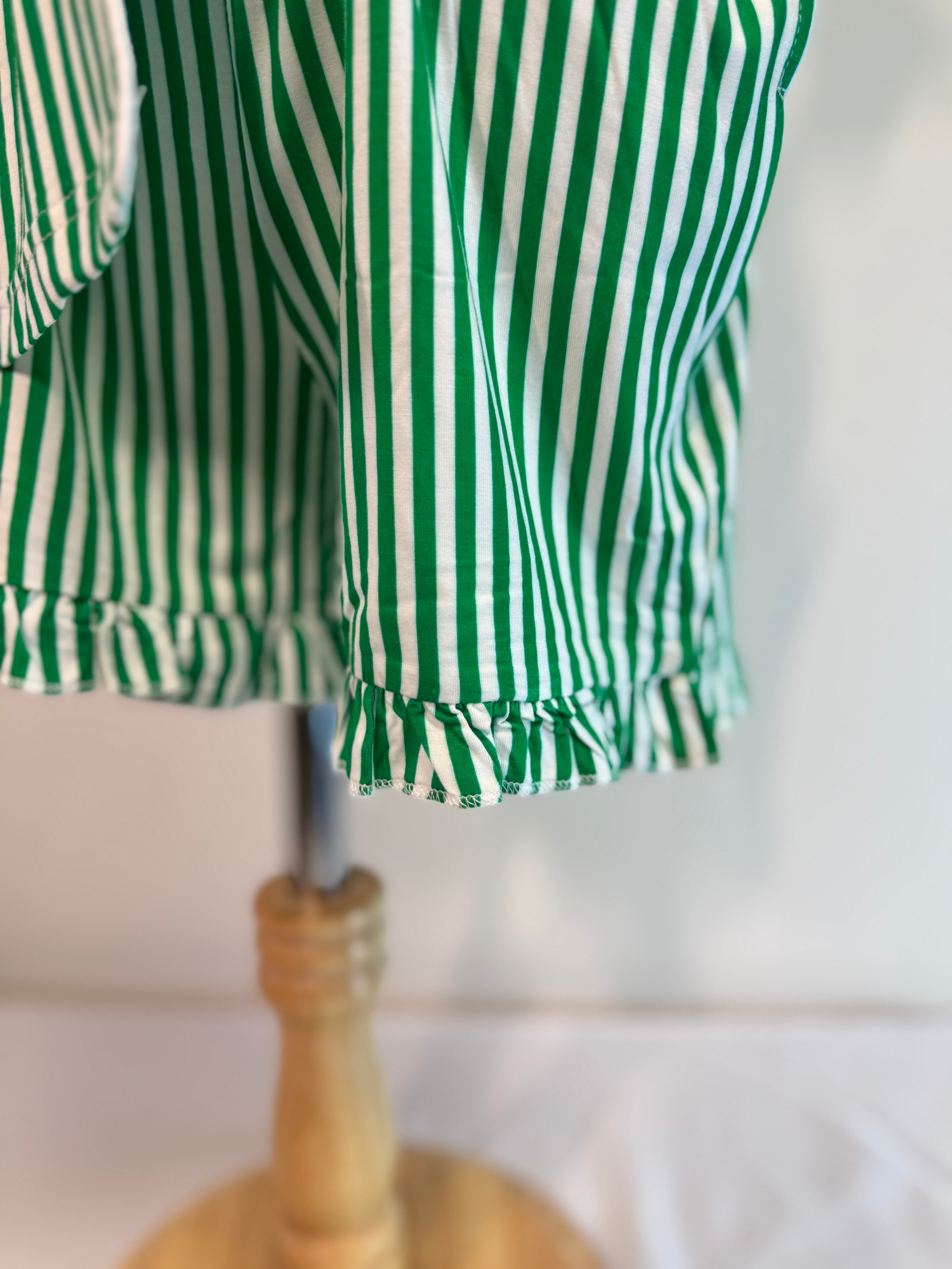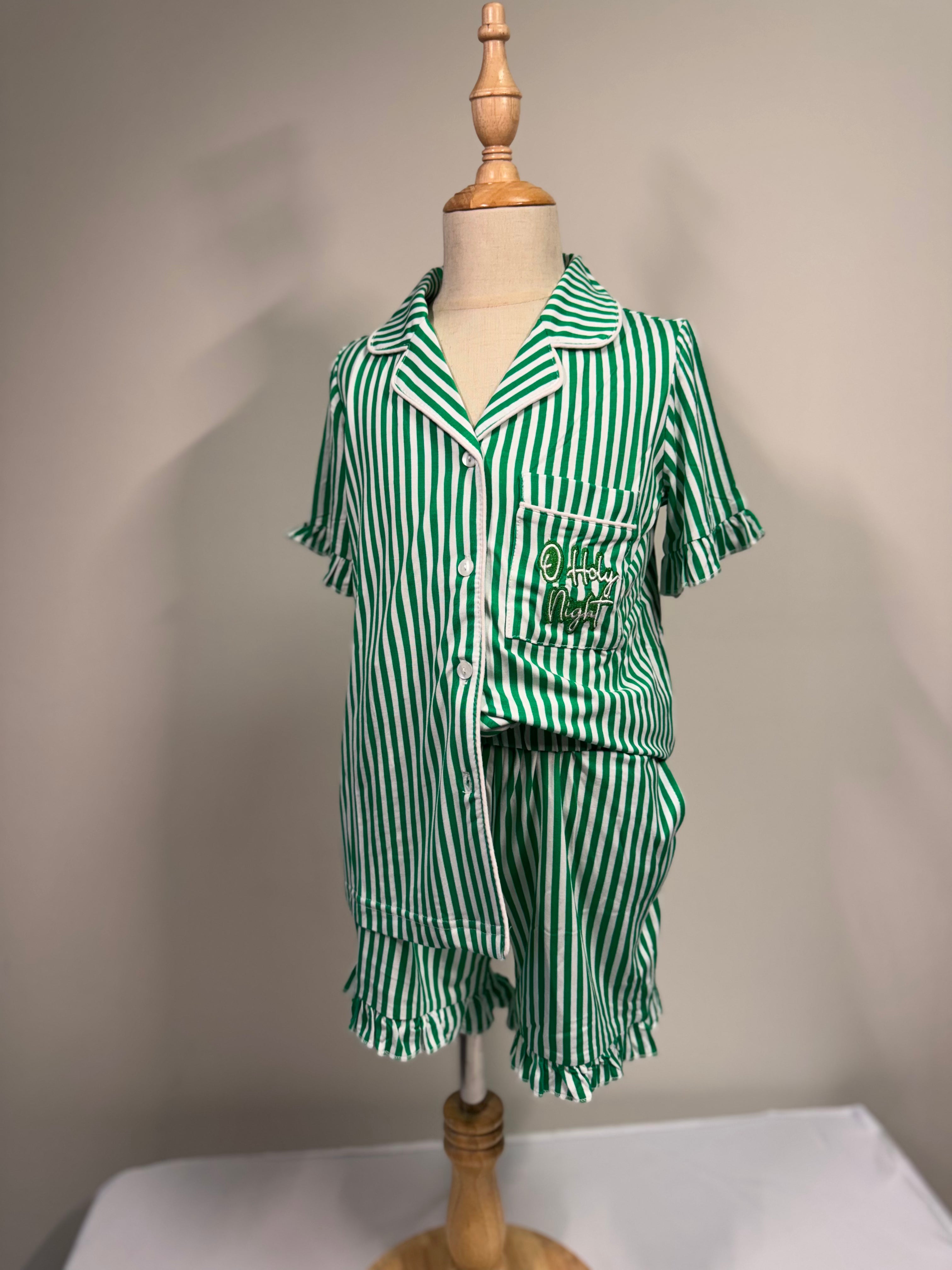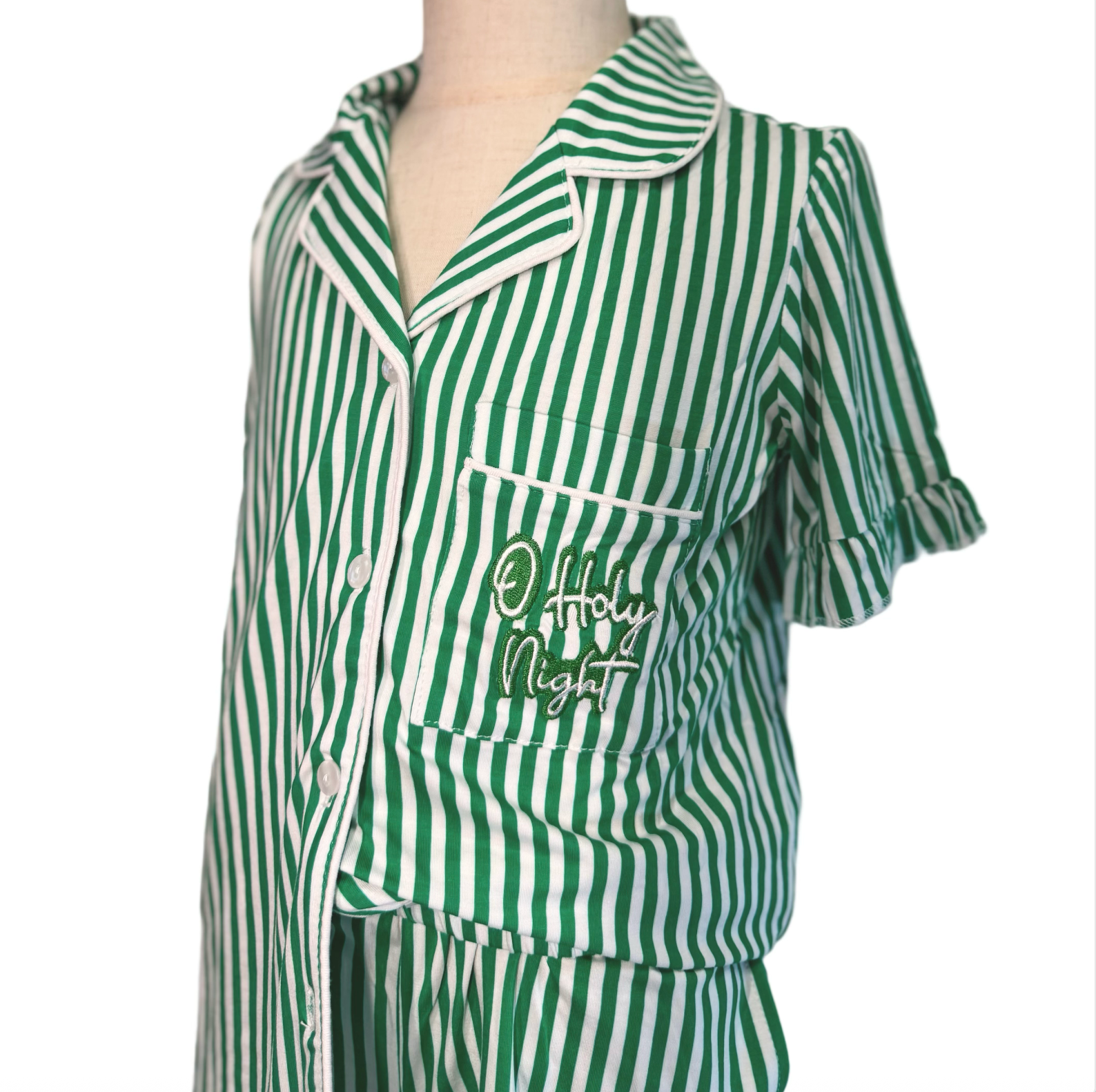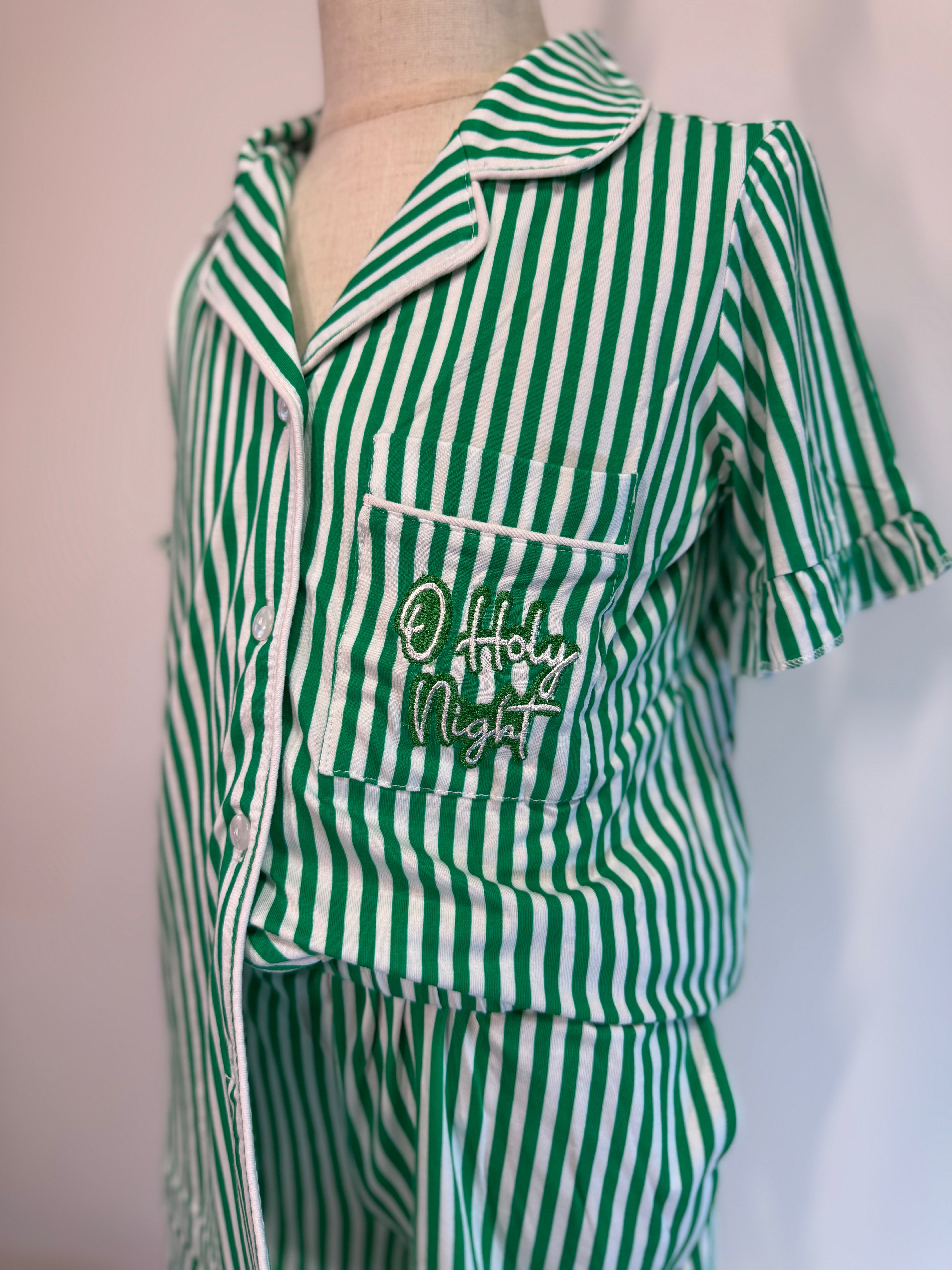 Girls’ Christmas Green Stripes Embroidered Pajama Shorts Set – O Holy Night