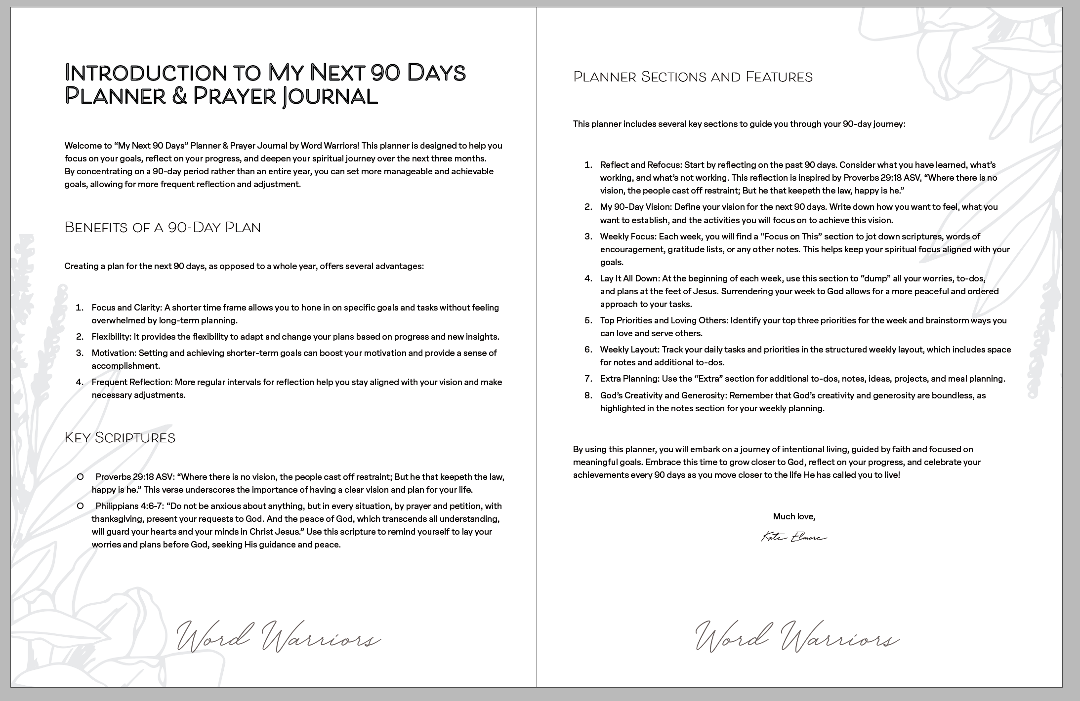 • 90-Day Goal Setting: Set realistic goals that prioritize what matters most and align with your faith.