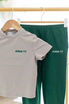 Let your little guy rest easy and rise strong with our Joshua 1:9 Embroidered Loungewear Set. Thoughtfully designed for both comfort and courage, this 100% cotton set features a soft crewneck tee with an embroidered Joshua 1:9 reminder — “Be strong and courageous. Do not be afraid; do not be discouraged, for the Lord your God will be with you wherever you go.”