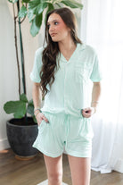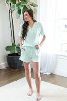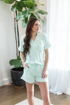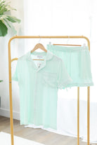 Hope Embroidered Pajama Shorts Set with HOPE Embroidery in Mint Green