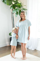 House Dress for Women, Embroidered Word Sleep Shirts in Pink & Blue