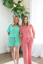 Women’s Christmas Green Stripes Embroidered Pajama Shorts Set – O Holy Night