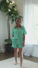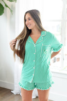 Women's Christmas Green Stripes Embroidered Pajama Shorts Set - O Holy Night