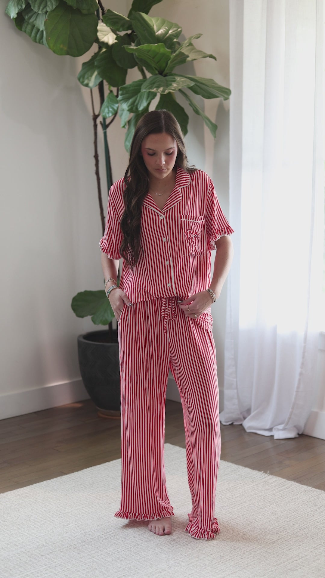 Girls Christmas Red Stripes Embroidered Pajama Pants Set - Rejoice