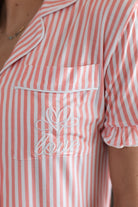 Pink Stripe Bamboo Pajama Shorts Set – “Love” Embroidered Women’s Sleepwear | Soft Button-Up Lounge Set