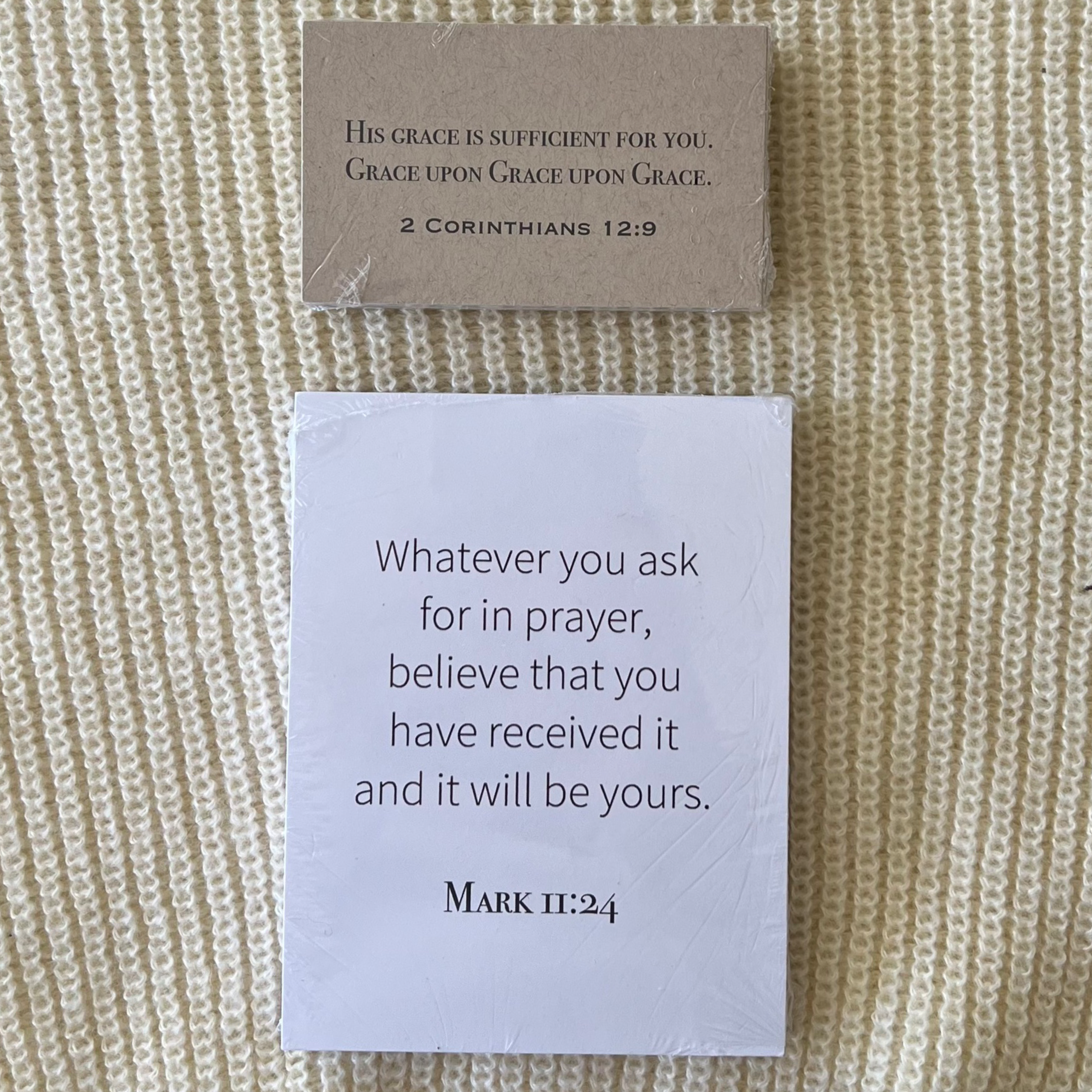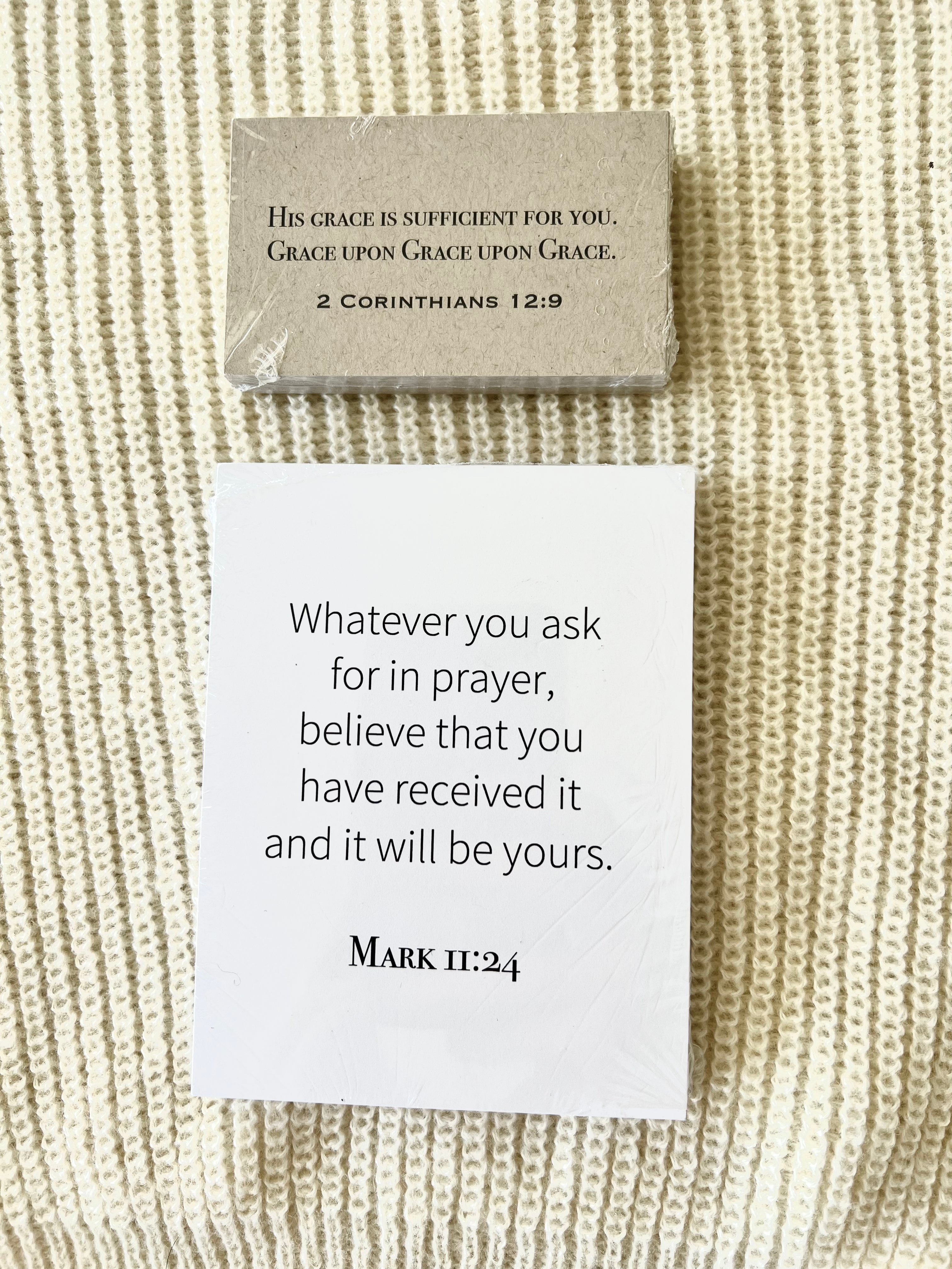 These bible verse cards are perfect for memorizing scripture each day of the month (comes in a set of 30) or to have them to put in notes to friends or give out to someone who may need a bit of encouragement. Make sure to add our clear card display holder if wish to have a stand.
