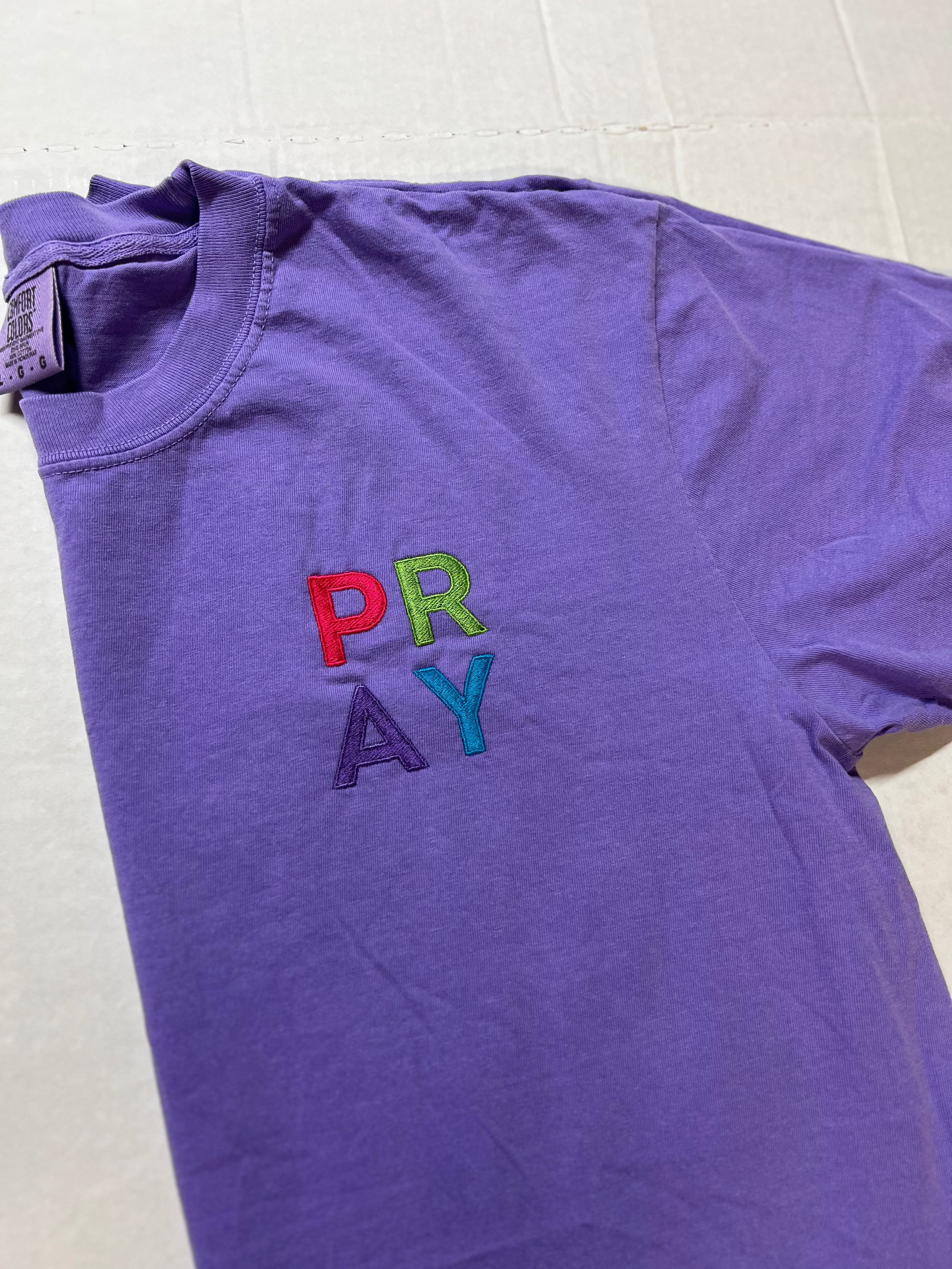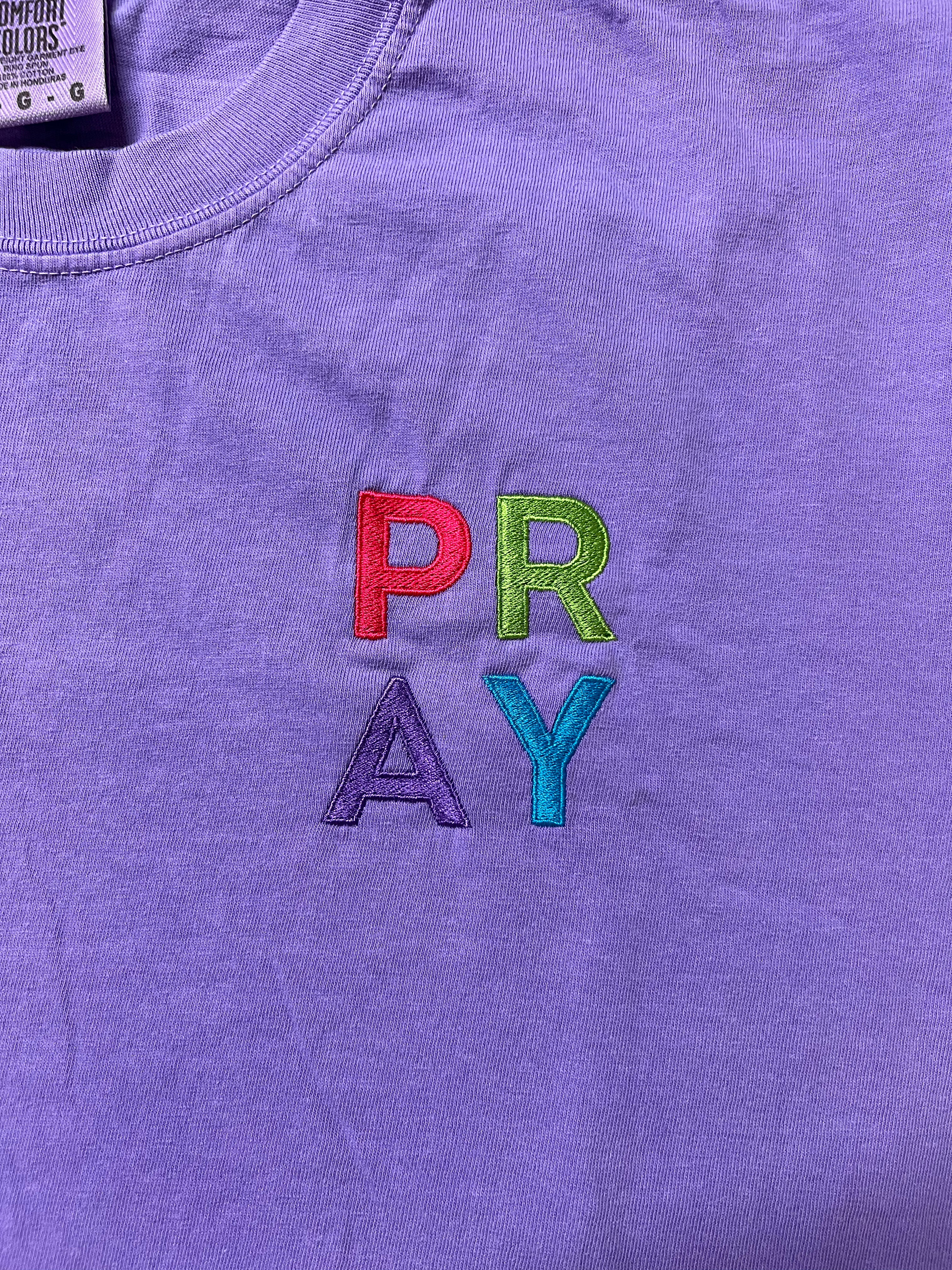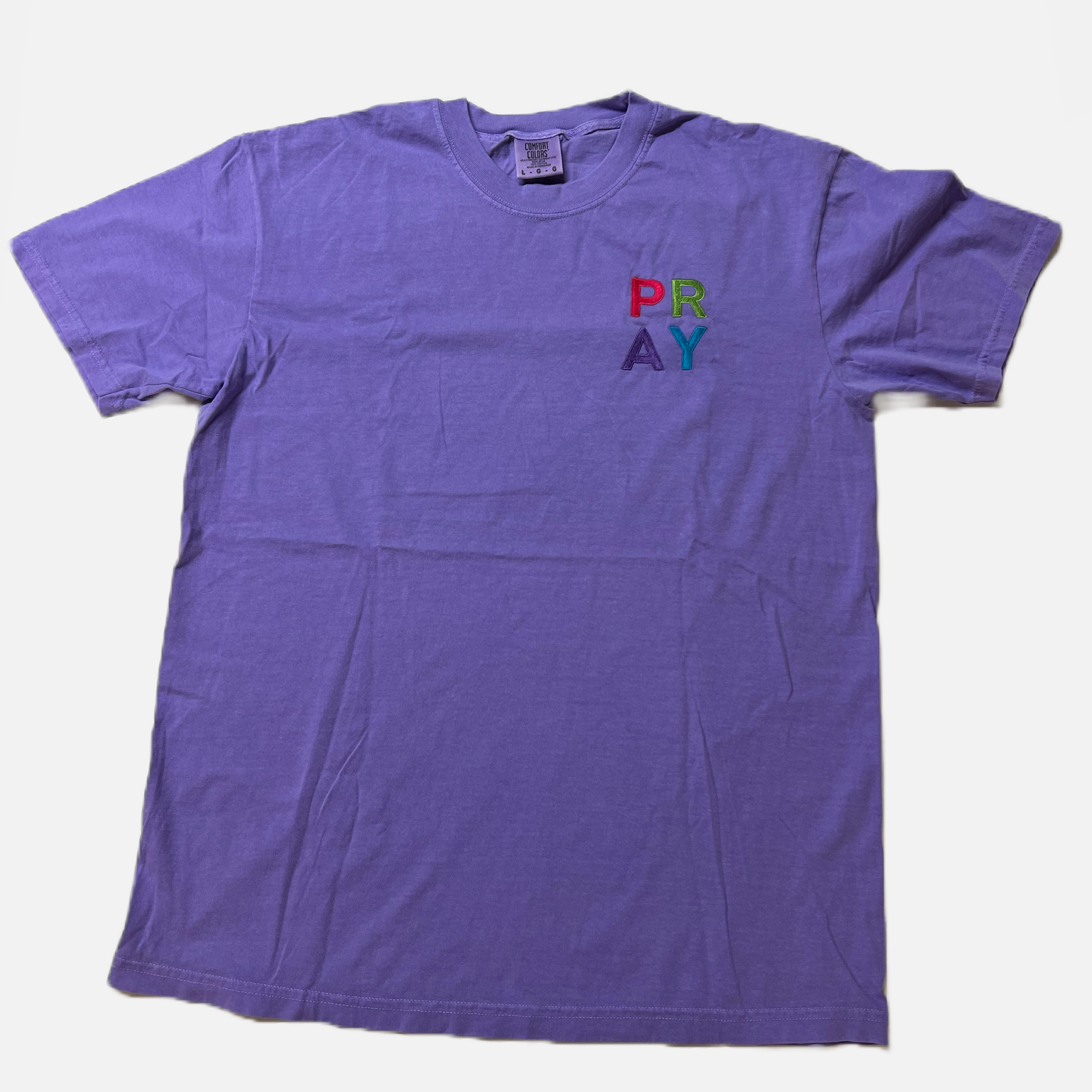 PRAY Embroidered Comfort Color T-Shirt, Soft Purple Tee