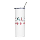 Enjoy hot or cold drinks on the go with this stylish stainless steel tumbler! This reusable tumbler with a metal straw is a perfect combo for hot or cold drinks at any time of the day.