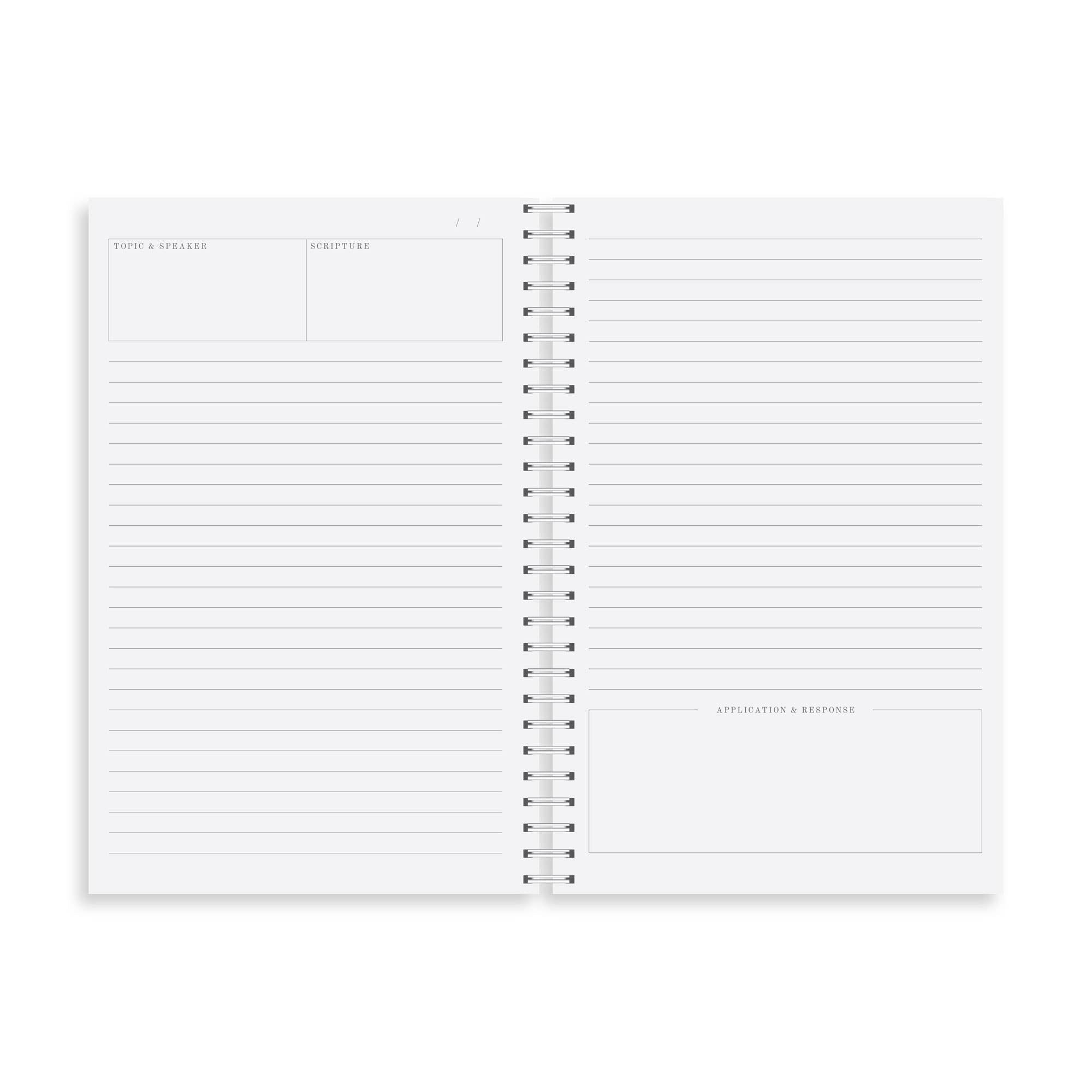 This simple 148-page note-taking journal is designed to help you keep a record of all the teaching you take in at church. Each two-page entry has space for you to record the date, topic, speaker, and scripture used, as well as plenty of room to take notes, reflect on the application, and respond to the message.