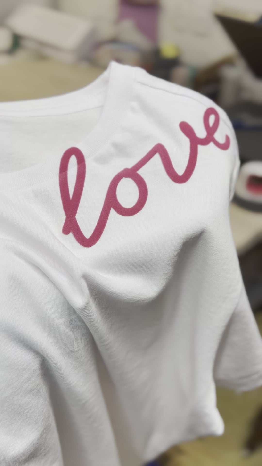 Love Script in Pink Flocked Vinyl (velvety feel)