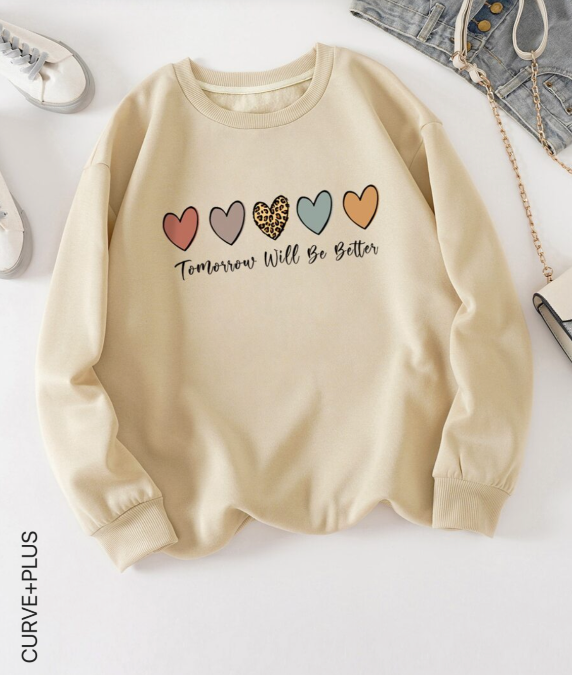 Embroidered fleece crew sweatshirt for women - "Tomorrow will be better"